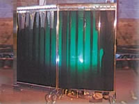 A melhor proteção em todas as instalações industriais. Composto de lâminas de PVC Verde especial, lavável e antichama.